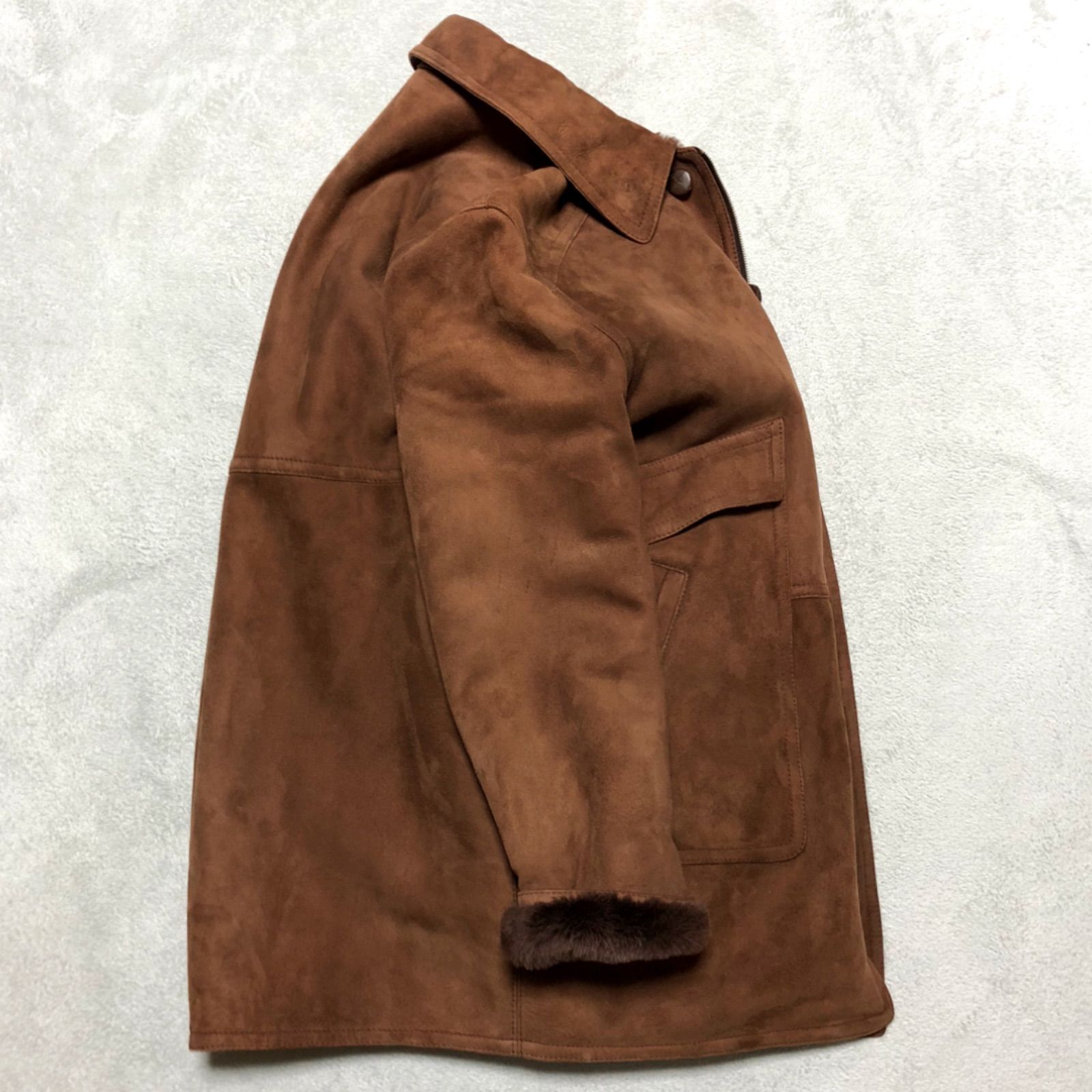- メンズ > ジャケット・アウター > DURBAN ダーバン レザー コート ブラウン L ベルト付き (103)a D'URBAN イタリア製 ムートンコート レザーカーコート ボア 羊革