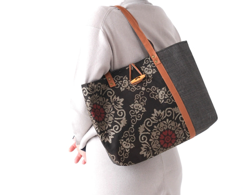 | 商品の特徴 | アンティーク大島紬のトートバッグ 赤華紋 リバーシブル A4。nkcoh7567_06.jpg。一点もの!」大島紬 着物、帯リメイク*紺に赤花柄*トート。純泥染、地空きの大島紬をトートバッグにしました。黒に近い泥茶の地に、カトレアのお花が浮かんでいて優美です。カタス式の絣の織り出しに工夫が凝らされています。立体感のあるお花、少しフラットなお花、線描きに見えるお花もあり、奥行きが感じられます。底と持ち手の付け根部分には赤紫(葡萄色)の正絹紬の帯地を、裏地には赤紫系のグラデーションの正絹紬を合わせました。裏地の紬は、緯糸の黒が加わって渋さも感じられます。光沢があるので全体に銀色がかって見えます。モダンな雰囲気が表地と調和しているかと思います。黒と紫でまとめたので、シックなバッグに仕上がったかと思います。生地全体に防水防汚スプレーをかけています。持ち手にはウッドビーズ付きのリネンコードハンドルを合わせました。グリップ部分に黒の麻紐が巻き付けてあります。外側、内側に倒せます。入れ口にはバネホックの黒い本革タブを付けました。留めた時入れ口は約4cm開きます。表地と持ち手はバッグ用の接着芯を、裏地には薄い接着芯を用いてしっかりさせています。自立します。内ポケットは底に付くやや深めの2個口、ファスナー付き、カード入れです。ファスナーの色は灰紫、金具はゴールド色。底板は、フェルト状シートを両面に貼った板を共布でくるんでいます。おおよそのサイズ(単位:cm)横 (入れ口)37(底幅)28縦24マチ8持ち手 入れ口から計った長さ(外径)37持ち手部分の幅 1内ポケット 縦16.5×横13.5cmが2つファスナー付き 縦19×横(ファスナー全開時の開き幅)18.5 内布の幅25カード入れ 縦4.5× 横9重さ327g大島紬はお着物を解いてクリーニングしたもの、帯地と裏地の紬は、未使用(反物)の古布をスチームアイロンでお手入れしたものです。できる限りきれいな部分を用いるよう心がけていますが、薄い汚れや色あせ、小さなキズ、折りじわ、糸の飛び出しなどある場合がございます。殊にこちらの大島紬は地空きですので、無地の部分のキズや筋が目立って見えるかもしれません。それも古布の味のうちとご理解いただける方にお願いいたします。佐川急便/日本郵便80サイズで発送いたします。#大島紬#Kazahaのバッグはこちら。送無】大島紬(黒灰地赤花唐草B) | iichi 日々の暮らしを。お纏めリクエスト*ロラライハリス♡ブラックWデニム絞りバッグ♡ベロアのショルダー。1点限り‼️可愛いレトロパッチワークトートバッグ ショルダー紐、ミニポーチ付き。3434 他。かりの様ご確認用。♡handmade♡ ミナペルホネン まぁるい底のバケツバッグ。トートバッグ♥ハンドメイド。むぎ 様 mermaid。ロラライハリス♡インディゴグラデデニム♡刺繍の本革持ち手のフリンジ肩掛けバッグ。ゆきそら トートバッグ15点おまとめ。クレヨン様 リクエスト 3点 まとめ商品。カラフルな手漉き和紙仕立てトートバッグ。チロスケ 猫ちゃん (両面パネル)トートバッグ。ハンドメイド ミナペルホネン 大きなポケットのスクエアトート⑅︎◡̈︎*。フェイラー スクエアミニバッグ 学校フェイラー。トートバッグ、レッスンバック。ハワイアンキルト♪ハンドメイドバッグ♪波と海のモチーフ&プルメリア。★専用★3品おまとめ❤帯リメイクバック❤渋めな金色お姫様❤大容量トート❤2ウェイ。ペコ トートバッグ類おまとめ13点。ミナペルホネントートバッグ 新作タンバリンハンドメイド8月15日迄限定お値下げ。りりー様オーダー品 ユキエモン トートバッグ ハンドメイド。j*n様 ハンドメイド マルシェトートバッグ ミナペルホネン smile flo。ミナペルホネンハンドメイドシャーリングバッグswing(light gray)。パッチワークキルトのトートバッグ。デニムリメイクバックM お花し刺繍ニコちゃん | ||