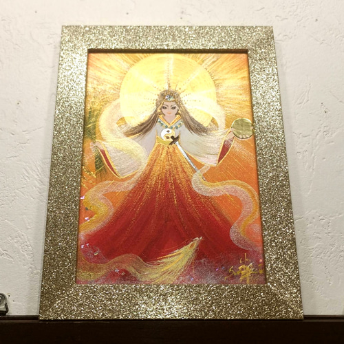 - 美術品・アンティーク・コレクション > 絵画 > 【風水絵画】赤富士金龍・天照皇大神 強力波動アセンション次元上昇 普通色紙 風水吉祥神仏絵画*虹鏡 天照大御神赤富士と羽衣龍 金箔紙 太陽
