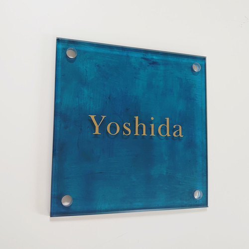 | メーカー | こんぶ*ターコイズペイント背景アクリル表札*4辺45度斜めカット*UV印刷 |