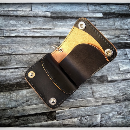 - ファッション小物 > 財布・ケース・小物入れ > 週末限定セール 折らずお札収納 茶芯 丘染めブラックの無骨トラッカーウォレット ☆New☆◇お札を折らない トラッカー ウォレット ミニ ◇茶芯