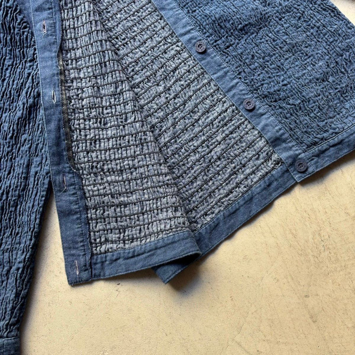| 商品の特徴 | 80s bis bis gene ewing キルティングデニムジャケット。USA製 80年代 80s gene ewing-BIS コンチョ デザイン デニム。80s〜GENE EWING BIS Shirring jacket | sui & shara。80s〜90s bis bis gene ewingのキルティングデニムジャケットです。Made in USAsize M(オーバーサイズ)着丈60身幅62裄丈87個人的にも集めているgene ewingの服ですが、中でもスペシャルな方だと思っています。gene ewingは春夏っぽい薄手の服が多い中、中綿入り共生地の裏地も付いていて、程よくボリューム感のある服です。80sらしいデザインで、ドルマンスリーブ、ヨークスリーブといったパターンで尚且つ襟はこの手のジャケットに見られる簡素な大きめの襟ではなく、シャツにみられるような台襟付きシャツカラー、それでいてスナップボタン、キルティングと言ったgene ewingならではのクレイジーなバランスが唯一無二の服でとても面白いです。gene ewingはbalenciagaで経験しており、高級百貨店Neiman Marcusでも取扱いがあったブランドです。最近古着屋でも注目されてきています。個人的にも集めていて、気に入ってる物なので、実験的に出品しますが、一時的な物になるかもしれません。質問などあれば気軽にどうぞ。closedmarithe francois girbaud。ミュウミュウ キルティング デニムジャケット ブルー GWB086 38。LEVI'S 71506XX 40 デニムジャケット。コリンボ GREAT PLAINS WORK JACKET 91-B 試着のみ。ジャケット・アウター needles papillon denim jacket M。Levi's デニムジャケット 507xx 48 バレンシア レア美品 加工。ジャケット・アウター JAPAN BLUE JEANS JJK0012M31 40in。Levi's ×JUST DON NBA 半袖デニムジャケット S。MINEDENIM 803 TF-GJKT USD マインデニム 2 | ||