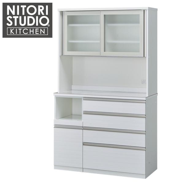 3/15午前中まで ニトリ リガーレ カップボード 食器棚 120cm ニトリ 幅120cm キッチンボード(セラミック天板リガーレ120KB WH