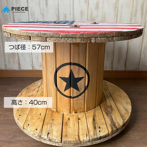 | 商品の特徴 | アメリカンドラム インテリア ガレージ テーブル 植物棚 電線。ケーブルドラム 電線ドラム テーブル アメリカン インテリア。アメリカンドラム インテリア ガレージ テーブル 植物棚 電線。現場で不要になったケーブルドラム(電線ドラム)にアメリカンなペイントをした作品です。室内のインテリア、ベッドのサイドテーブル、植物棚、小物置き、ガレージのアクセントにおススメです。底面にキャスターをつけていますので移動もらくらくです。ボディ部分(木の素地が見えている部分)はオイルステインでヴィンテージ風に仕上げています。※ハンドメイドのペイントですので、ムラや刷毛跡などがあります。※文字のステンシル部分も手作業ですので塗りムラがあります。※電線ドラム特有のボルトが出ています。※再利用品のため、洗浄と研磨をしていますが、木のトゲや釘など引っかかりにご注意ください。※使用時に塗装の剥がれなどがあると思いますが、汚れたり、キズがついたり、サビたり経年劣化するとより良い感じに変わってきます。ヤレた感じ、アンティーク、ヴィンテージが好きな方に。サイズ:直径約52cm×高さ約40cm===============ケーブルドラムの在庫ありますので、過去作品でご希望のペイントがある場合や、オリジナルのペイントご希望の場合はコメントでご相談ください。===============(検索キーワード)#アメリカン雑貨 #アメリカンヴィンテージ #ガレージ #ガーデニング #アンティーク #DIY #観葉植物 #庭 #電線ドラム #ケーブルドラム #プランター #花台 #花置台 #アップサイクル #再利用 #フラワースタンド #フラワーベース #ブルックリン #route66 #66号線 #ブラック #星条旗 #木製雑貨 #古材 #アメリカンポップ #テーブル #サイドテーブル #アウトドア #バイク #ハーレー。ケーブルドラム 電線ドラム テーブル アメリカン インテリア。無印良品 テーブル リビングでもダイニングでも。ケーブルドラム 電線ドラム テーブル アメリカン インテリア ガレージ 星条旗②。希少!アンファンコーハウスカントリー家具テーブル。値下げ!Francfrancダイヤモンドテーブルゴールド 美品一箇所だけ小傷あり。ぐ*り様 arflex アルフレックス UVI ウビ センター テーブル 大理石。【取引成立済ローズ⑤】大理石円形テーブルセット(テーブル皿)。折りたたみ式ナチュラルウッドテーブル。大田 丸型テーブル。【美品】大川家具 タイル付き テスタ TESTA センターテーブル 可愛い。ダイニングテーブル けやきの無垢材使用 | ||