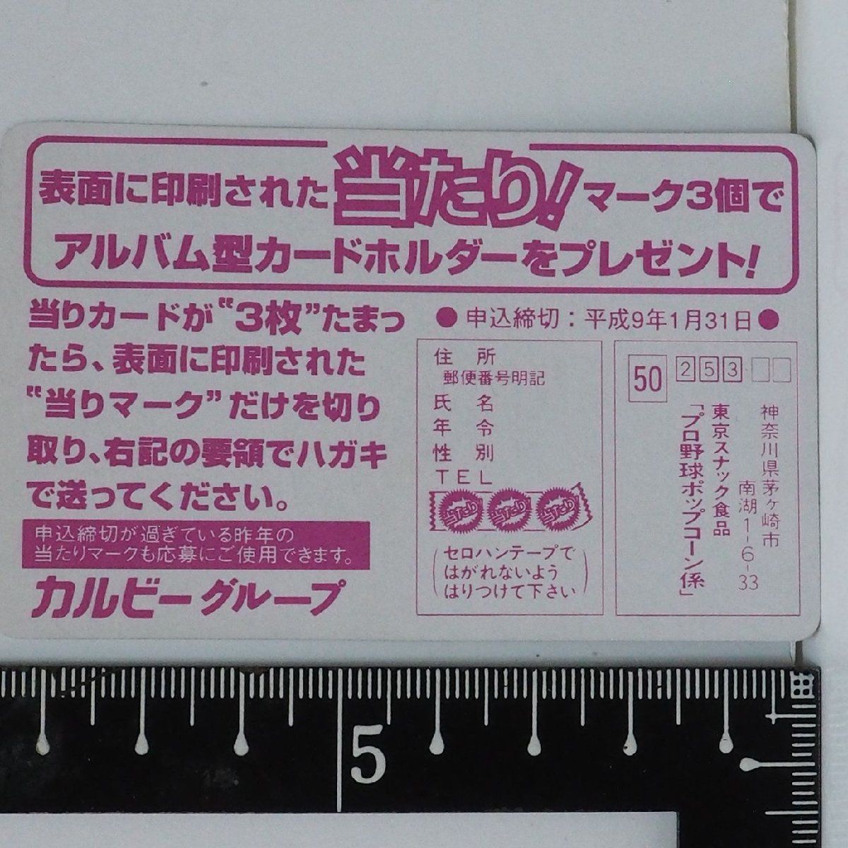 | メーカー | 東京スナック プロ野球 ポップコーン カード 1996年 |