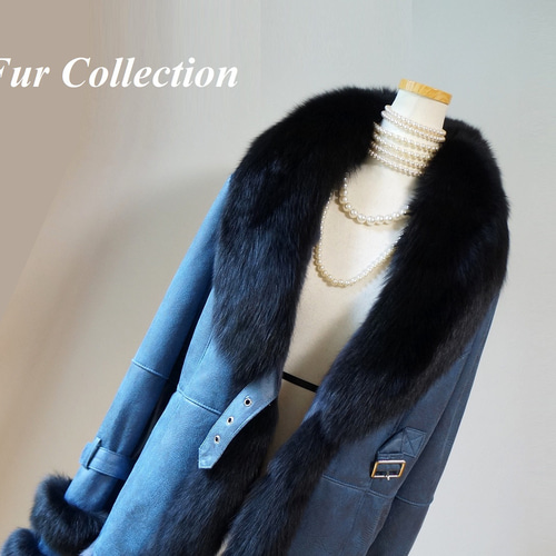 - レディース > ジャケット・アウター > 美品 CREA 羊革 ブルーフォックス 毛皮 コート ムートン リアルレザー 黒 柔らかな着心地☆フォックスファー付きWフェイスムートンコート