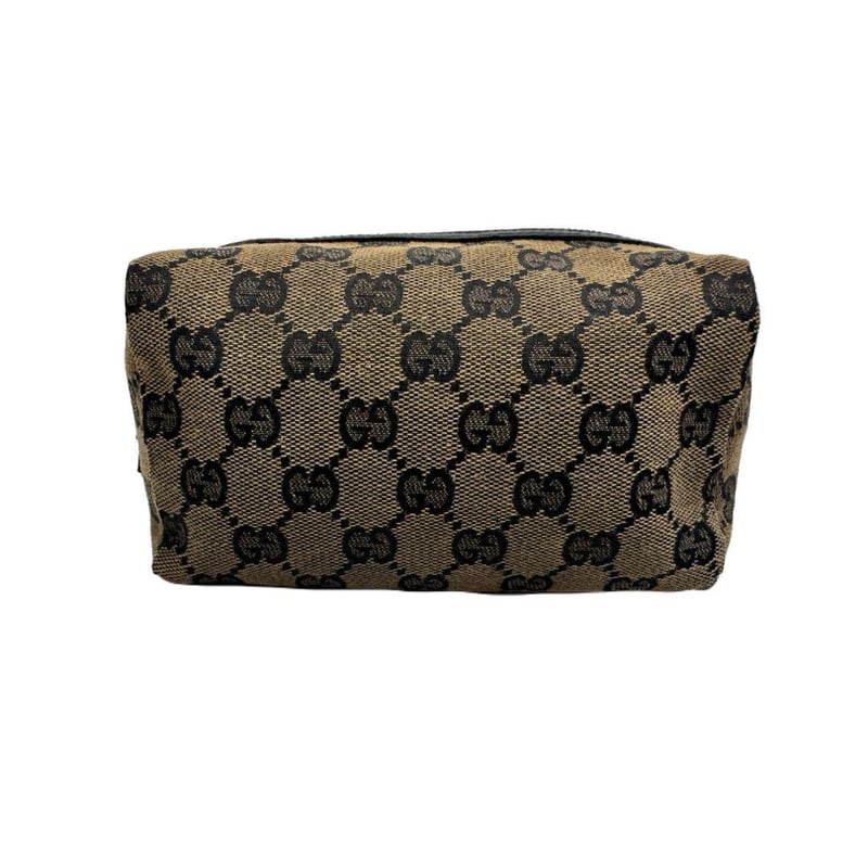 - ファッション小物 > 財布・ケース・小物入れ > 【極美品】GUCCI グッチ GG柄レザー使い ポーチ コスメポーチ 小物入れ GUCCI グッチ GGキャンバス ブラウン×ブラック 化粧ポーチ