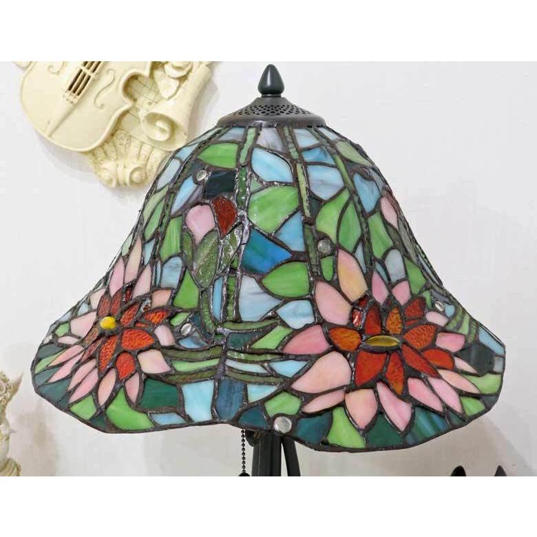 大型古風ステンドグラスランプ 花形テーブルランプ 卓上照明 高さ67㎝★時代物 ステンドグラスランプ 蓮の花 16インチ 大型 ティファニーランプ