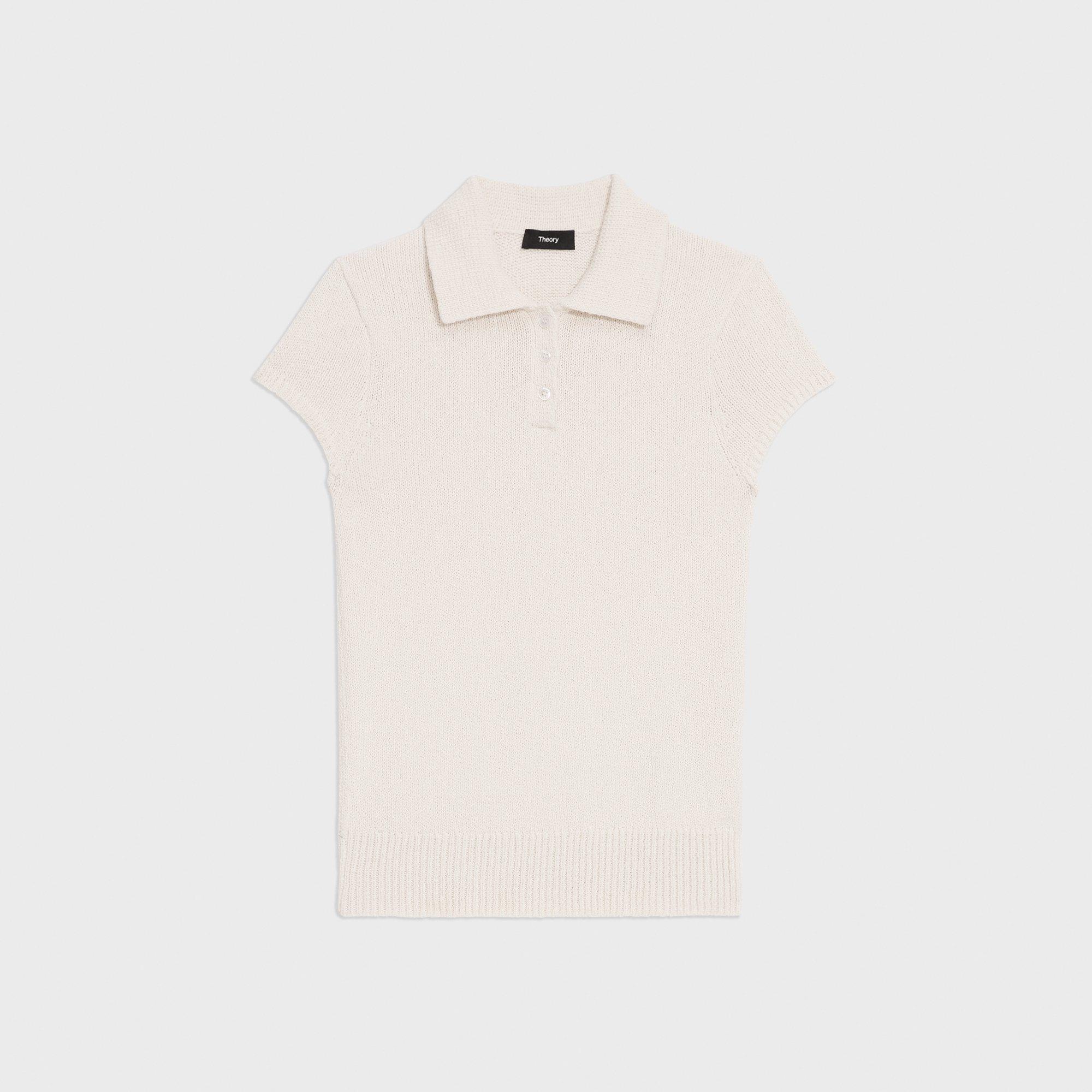 トップス theory Wave Boucle Cap Sleeve Polo Shirt Cotton-Wool Bouclé Cap Sleeve Polo | Theory