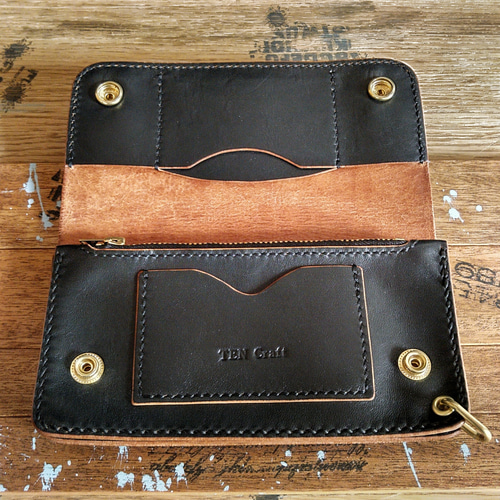 - ファッション小物 > 財布・ケース・小物入れ > [ハンドメイド]トラッカーウォレット 新喜皮革ヴィンテージホース黒 コンチョ ヴィンテージホース ブラック】 トラッカーウォレット TW-02 長