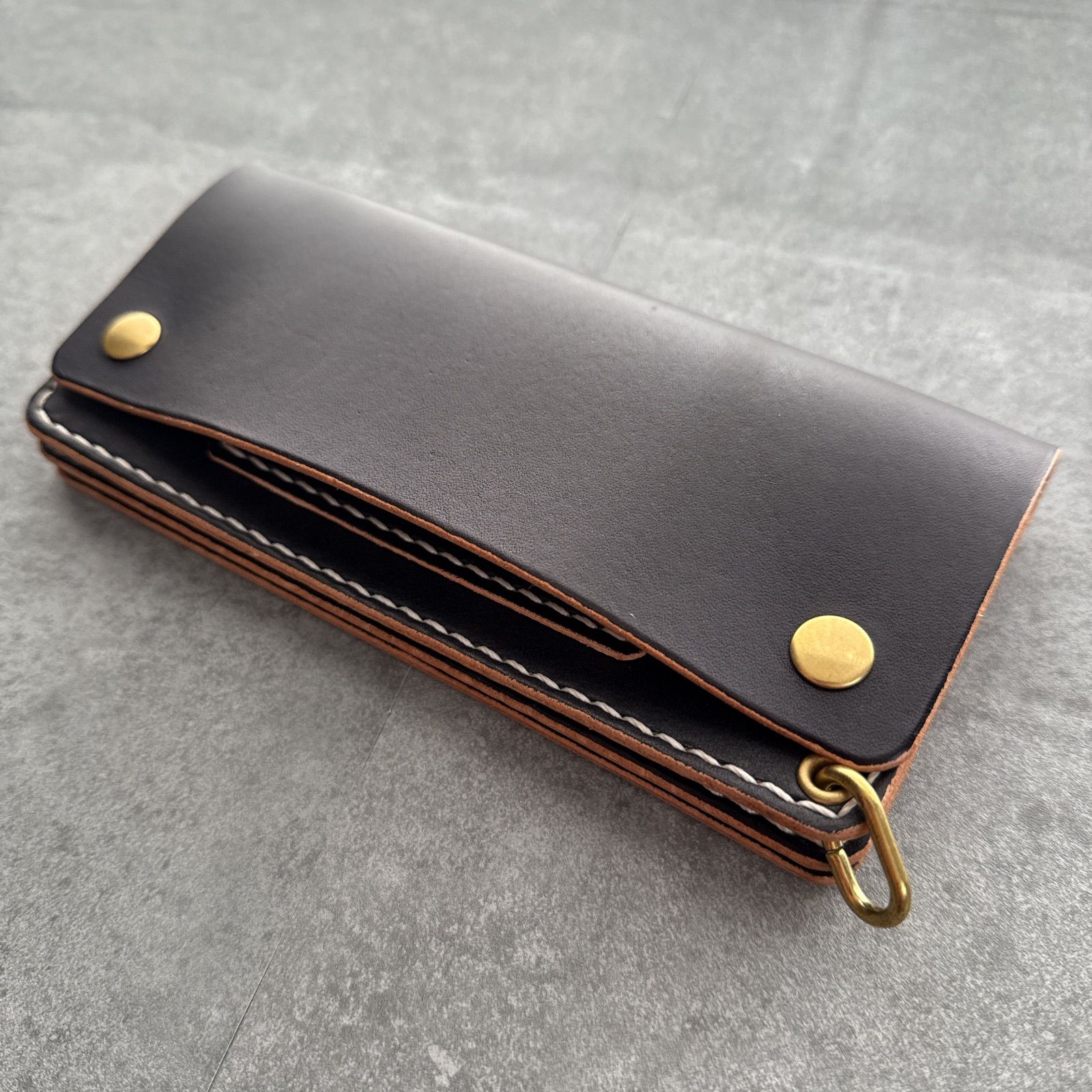 - ファッション小物 > 財布・ケース・小物入れ > ロングトラッカーウォレット 真鍮ウォレットチェーン付き 長財布 姫路レザー 黒 ロングトラッカーウォレット 真鍮ウォレットチェーン付き 長財布