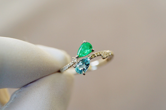 | メーカー | K18*ネオン感あふれるエメラルド&ダイヤリングになります 受注制作「姉妹」K18 |