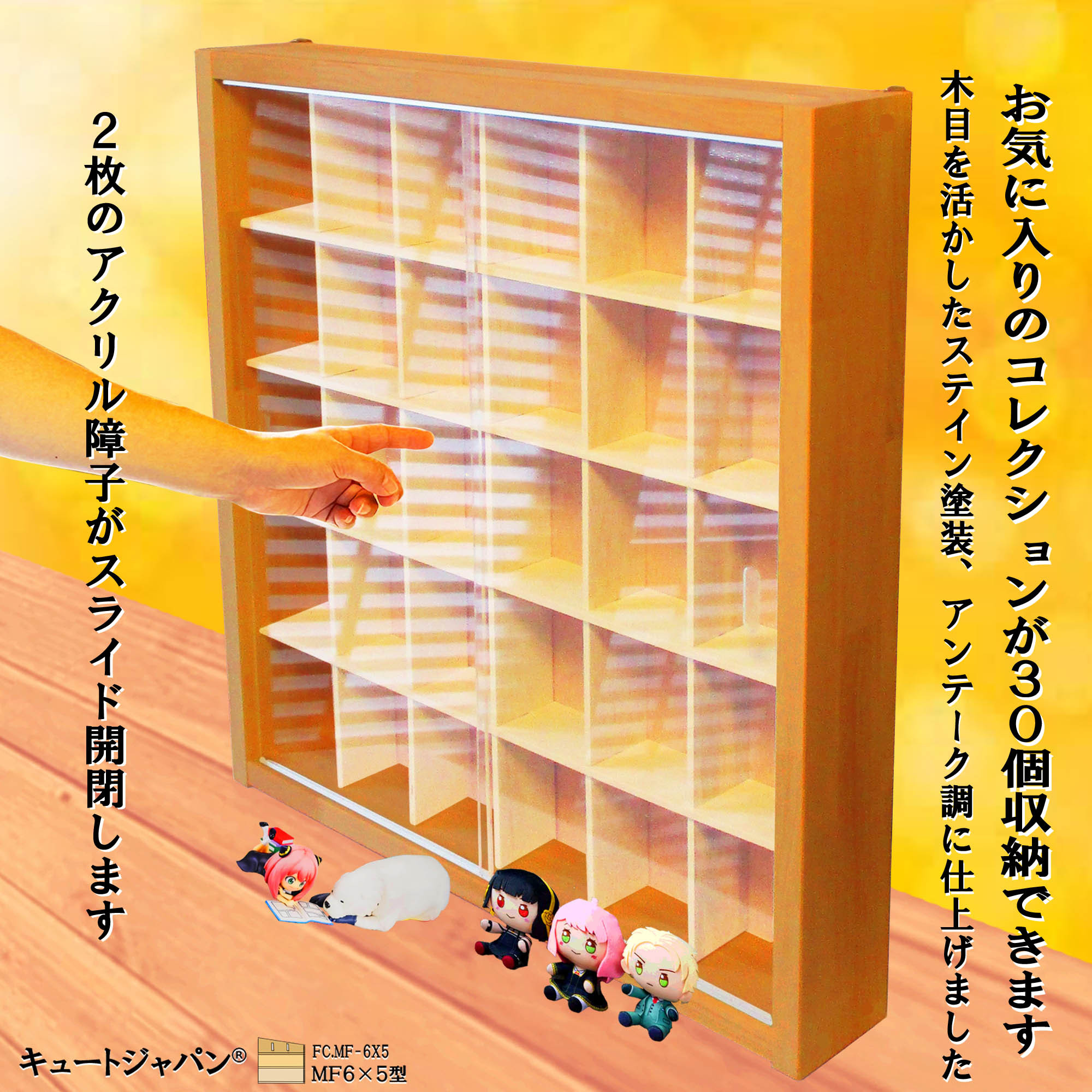 | 商品の特徴 | コレクションケース 30マス アクリル障子付 ホワイト色塗装 日本製 フィギュア。フィギュア コレクションケース 30マス アクリル障子付。フィギュアケース】フィギュア コレクション ディスプレイ。【本体寸法】 巾559ミリ 高さ594ミリ 奥行92ミリ。【マス目寸法】 巾80ミリ 高さ104ミリ 奥行60ミリ。アクリル障子付の収納ケース 未使用製作品 MF6×5型です。アクリル障子は透明度が高く、大切なコレクションをホコリや傷から守ります。大切なコレクションを保管したい皆さまにご満足いただける一品と自負しております。外枠にメルクシパイン集成材・中桟にベニヤ(中桟正面は塗装仕上)を使用しています。外枠を合成樹脂ホワイト色塗装。重ね塗りのうえ研磨仕上をしています。お部屋のインテリアコーディネートに・・・。フィギュアが30個収納でき、コレクションをより一層惹きたてるディスプレイケースです。コレクター様に『こんなの欲しかった!』 そう言わせたい一心で製作しました。アクリル障子付ケースは3割を超える方がリピート(感謝!)されています。ありがとうございます。ご自身用に・・。プレゼントにもおすすめです。購入時の注意点:材料は建材を使用していますが、表面は天然木のため色目・木目・節の具合がその都度変わります。天然木独特のシミ・節目・割れ・接ぎがある場合がありますが、構造上問題はありません。製作では裏面の意匠は視覚的に重要視していません。ご了承ください。●スライド式障子は光線透過率93%の高品質アクリル板3ミリ厚を使用しています。引手加工をほどこしていますので開け閉め楽々です。●外枠に木目を活かしたパイン集成材を使用しています。長年お使いいただけるよう頑丈な造りとなっています。※中桟は固定式で可動はしません。サイズをご確認のうえご購入ください。※製品の一覧表を掲載しています。お探しの収納寸法がきっと見つかります。ご不明な点などご質問ください。ご購入された方の『コレ、また欲しい!』の嬉しいご感想を励み(ビタミン剤です!)にして、日々製作を行っております。製作・販売元 株式会社キュートジャパン#キュートジャパン#MF6×5型#一番くじ#ちょこのっこ#フィギュア#ガチャ#カプセルトイ#ミニチュア。フィギュア 収納ケース コレクション 30マス アクリル障子付。未開封 カービィフレンズ2 Box 12個入り。モンハン フィギュア ゼノ・ジーヴァ 2体。Experten ウマ娘 ライスシャワー フル可動ガレージキット 1/12。どうぶつの森 リセットさん メモスタンド。ポケモン☆激レア モンコレ 当時品 ニョロモ ニョロゾ ニョロボン。サングィナリー・ガード ウォーハンマー ブラッドエンジェル。刀剣乱舞 大典太光世 ねんどろいど。一番くじ ニケ 勝利の女神NIKEE B賞 ノワール フィギュア。アルター ポーラ 水辺のハプニング?Ver. アズールレーン 1/7。サイレン SIREN 宮田司郎 ソフビ 暗黒エンターテイメント。一番くじ fgo メリュジーヌ フィギュア。勝利の女神:NIKKE プライズフィギュア マグカップ など 10点セット。figma マリィ 未開封 応援ラッパ付き。エヴァンゲリオン 綾波レイ Precious G.E.M メガハウス フィギュア。S.H.フィギュアーツ ファイアマリオ&1upキノコ。ファイナルファンタジーXIV: 黄金のレガシー コレクターズエディション。ヤ・シュトラ 「ファイナルファンタジーXIV」 ミニオンフィギュア。一番くじ ニケ 勝利の女神NIKKE B賞 ノワール フィギュア。ブルーアーカイブ KAITEN FX MK.0 プラモデル。モンスターハンター コレクションギャラリー フィギュア モンハン。ツイステ ポムフィオーレ寮 ヴィル ねんどろいど 缶バッチ付き。アルトリアキャスター ガレージキット塗装品。【未開封】 FGO ランサー/ワルキューレ 3体セット。東方Project 十六夜咲夜 ガレージキット 大山竜 MouseUnit。【新品未開封】テイルズ オブ デスティニー リアラ 1:7スケール。【新品未開封】 モンハン クリエイターズモデル イヴェルカーナ。千恋万花 朝武芳乃 1/7スケールフィギュア あみあみ限定版。パズドラ一番くじ | ||