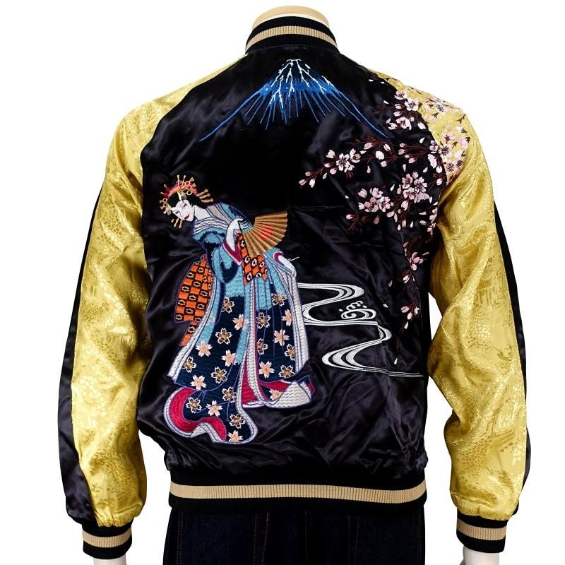 - メンズ > ジャケット・アウター > スカジャン castlerogues 和柄 舞妓 ブルー/ゴールド Lサイズ スカジャン castlerogues 和柄 舞妓 ブルー/ゴールド Lサイズ