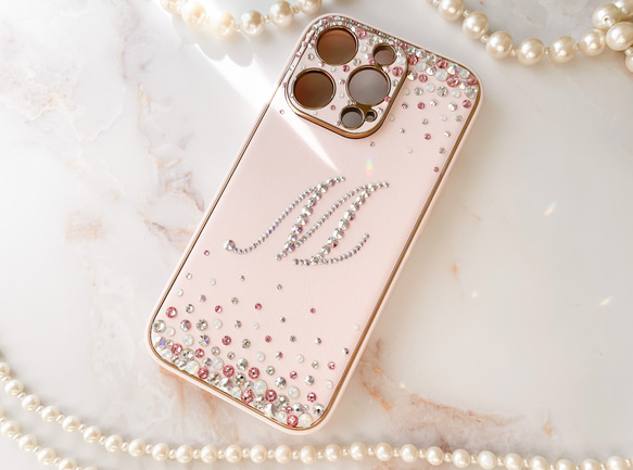 - スマートフォン・携帯電話 > iPhoneアクセサリー > iphoneケース 15pro スワロフスキー Phone 16pro,15,14他 ライトピンクイニシャル ケースオーロラmix