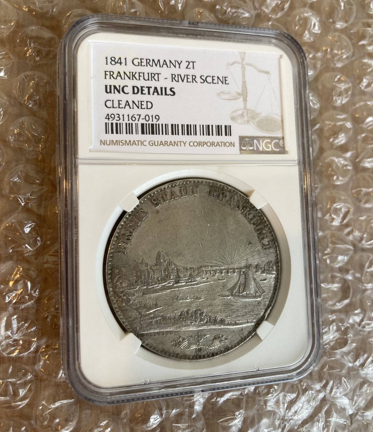 | 商品の特徴 | fit=scale-down,w=1200。ドイツ Germany フランクフルト 都市景観図 2ターラー銀貨 1841。JCC | ジャパンコインキャビネット / ドイツ 1841年 2ターラー。フランクフルトの風景が美しく描かれた1841年の2ターラー銀貨になります。表も裏も極めて状態はよく、建物の窓一枚一枚など景観の細部に至るまで打ちが施され、ルーペで見れば見惚れてしまうほどの美しさが残っています。都市景観コインは著しく人気があがっており、その中でも極めて大型でずっしりとした重みがある、間違いなく満足度の高いコインと言えます。老舗コイン商から譲り受けており真贋も問題ないです。ケースにいれて保存しておりケースに入れたまま送付します。重さ37〜38g計量写真はケース約7gが含まれています。- デザイン: フランクフルトの風景が描かれたコイン- 額面: 3½グルデン 2タラー- 製造年: 1841年- 素材: 銀製- 状態: クリアケースに入っているご覧いただきありがとうございます。。MS62】1841年 ドイツ フランクフルト 都市景観 2ターラー銀貨。INDIAガンジーコイン。水上‼️。アップル写真集 Designed by Apple in California。1896年 南アフリカ 2シリング銀貨と1シリング銀貨 クリューガー大統領の銀貨。純銀 メダル ディズニー アラジン 1オンス。1円銀貨 明治15年 特年 希少 一圓銀貨 一円銀貨 銀貨 本物保証 | ||