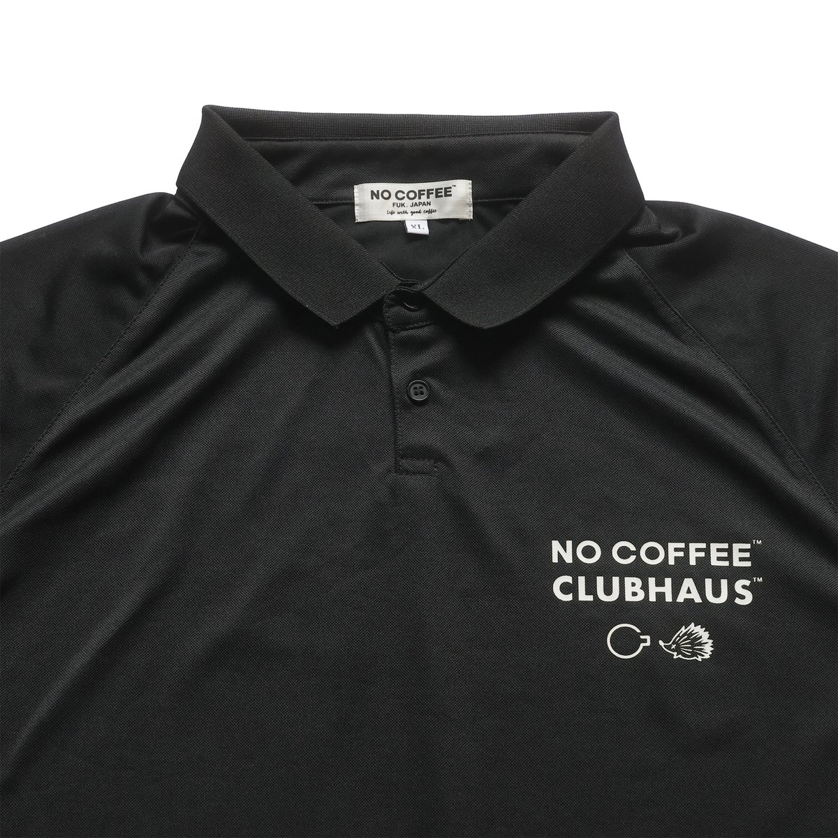 【ノーコーヒー×クラブハウス】ビッグロゴネーム 半袖ゴルフポロシャツL 黒 NO COFFEE × CLUBHAUS POLO SHIRT S/S - Black | C