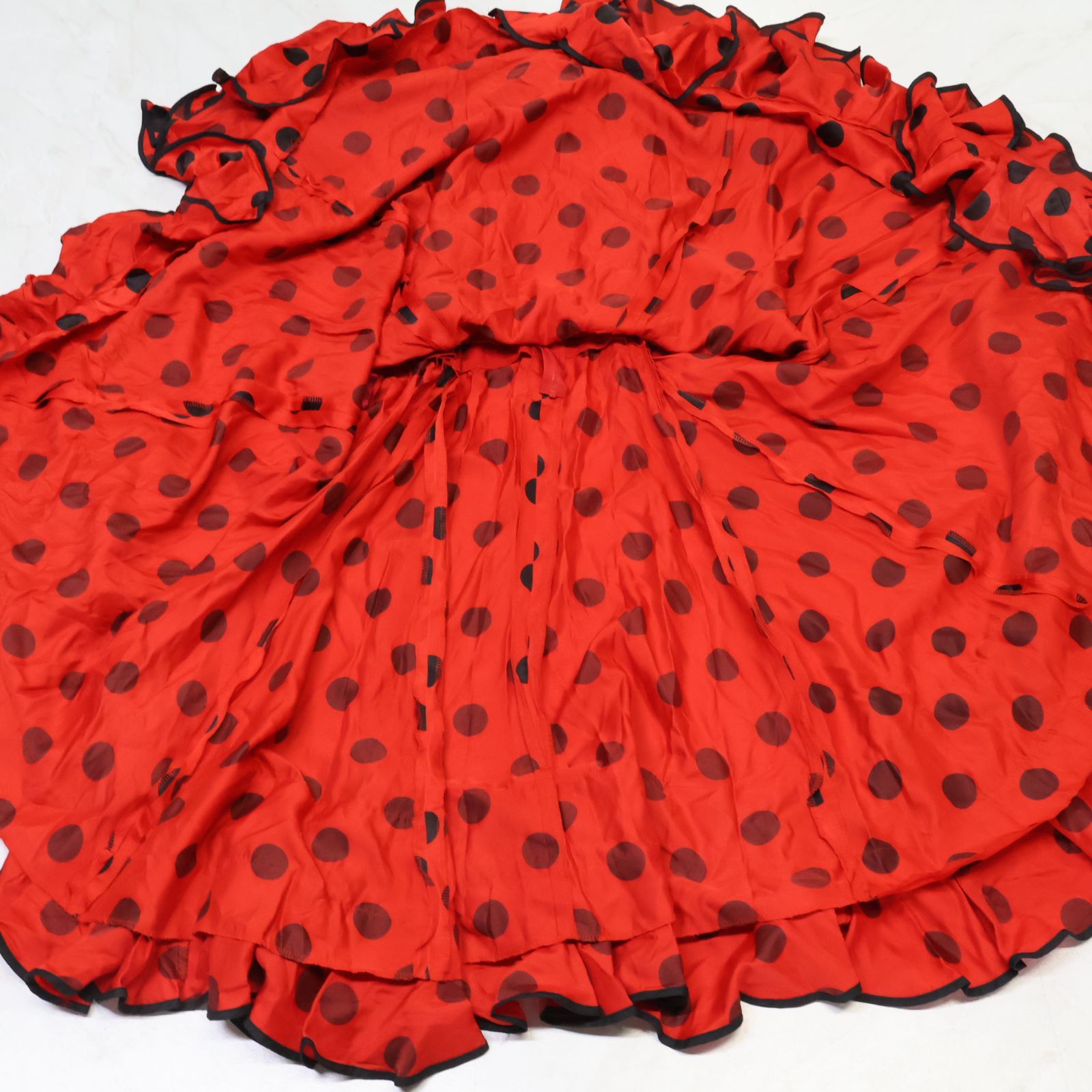 | 商品の特徴 | フラメンコ衣装】レッド ワンピース ドレス 赤 黒 ブラック。スペイン製 フラメンコ衣装】レッド ワンピース ドレス 赤。ROP-71-3】赤無地ワンピース - フラメンコドレス衣装のレンタル。赤と白の水玉模様がとってもキュートな、フリル付きロングドレスです♡ご覧いただきありがとうございます。◼︎サイズ感9号のトルソーにぴったり合うくらいです。(参考:トルソーサイズ/肩幅 約37cm・バスト 約88cm・ウエスト 約66cm)※実寸計測のため、多少の誤差はご容赦ください。◼︎デザイン・鮮やかな赤×白の水玉模様・フリルたっぷりで可愛らしい雰囲気・伸縮性はありません◼︎商品状態発表会で数回使用しました。大きなダメージはありませんが、使用に伴う小さなスレやうっすらとした汚れなどはご了承ください。◼︎ご注意事項・イメージ違いなどによる返品・交換はご遠慮ください。・気になる点はお気軽にコメントでご確認ください。。フラメンコ 水玉 フリル ワンピース ブラック×レッド 2033br。☆ フラメンコ風セットアップ L ピンク×ブラック。【カンロママ】フラメンコ シージョ&エプロン。フラメンコシージョ 手描きシージョ。フラメンコ用✨巻きスカート。フラメンコ ファルダ 新品 フラメンコ衣装 フラメンコスカート Leirena。【美品 フラメンコ衣装】鮮やかレッド×刺繍 ドレス 胸パット付き 大きく広がる裾 | ||