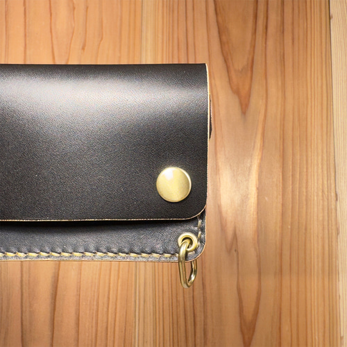 - ファッション小物 > 財布・ケース・小物入れ > 国産ヌメ革・丘染めブラック茶芯|ショートトラッカーウォレット|手染め仕上げ 国産ヌメ革・丘染めブラック茶芯|ショートトラッカーウォレット