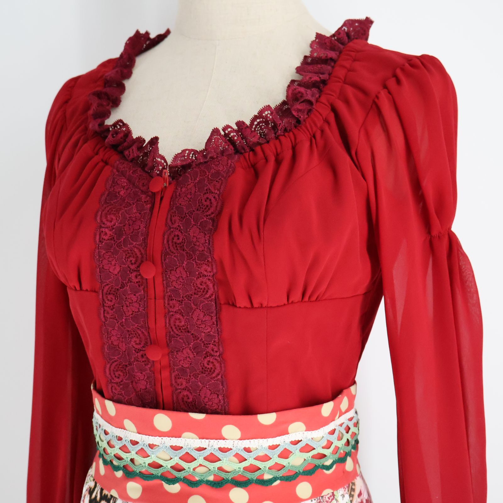 | 商品の特徴 | フラメンコ用 ソニアジョーンズ 赤フリルトップス フラメンコ用。Sonia Johnes | フラメンコ衣装のソニア・ジョーンズ 公式。Sonia Johnes | フラメンコ衣装のソニア・ジョーンズ 公式。ソニアジョーンズ フリルデザインの赤いフラメンコトップス。フラメンコ用 ソニアジョーンズ 赤フリルトップス Sonia Johnes。- 色: 赤- デザイン: フリル付き、Vネック- 袖: フリル付きの長袖- スタイル: フラメンコ用トップス- サイズ3(9号相当)バスト(cm) 84-86ウエスト(cm)63-66ヒップ(cm) 87-909年ほど前に赤坂店で購入。フラメンコスカート フラワープリント。状態は綺麗です。【りょう】フラメンコファルダ マーメイドタイプ。鮮やかな赤でどんなデザインのファルダにも合わせやすく、シルエットも綺麗です。ソニアジョーンズ フラメンコドレス 茶色と黄色の水玉模様。 | ||