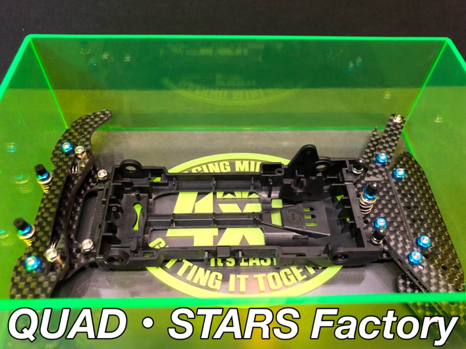 | 商品の特徴 | 完成品ユニット】ミニ四駆パーツ 2軸ATピボットバンパー+1軸。ミニ四駆パーツ】2軸ATピボットバンパー+1軸リヤアンカー。ミニ四駆・MSシャーシ用】2軸ATピボットバンパー+1軸リヤ。☀️お得な【まとめ買い申請】募集中☀️⚠️こちらのカーボンユニットは、ミニ四駆のセットアップにある程度慣れた【中級〜上級者向け】のカスタムパーツです⚠️◉2軸ATピボットバンパーのレシピ・MAシャーシ/ブラック(ABS) ×1・リヤブレーキステー/J-CUP2022 ×1・フロントワイドステー ×3・マルチ補強プレート ×1・スーパーXマルチ強化プレート ×1【スライドダンパー用スプリング(4種類付属)】◾️ピボット部分:ハード/シルバー ×2◾️2軸部分: ミディアム/ゴールド ×2【交換用】◾️ソフト/ブラック ×2◾️スーパーハード/シルバーメッキ ×2◉1軸リヤアンカー/19mmローラー対応のレシピ・リヤブレーキステー/J-CUP2022 ×2・マルチワイドリヤステー/J-CUP2024 ×2・直カーボン ×3・キャップスクリュー/2×20.3mm ×1◉ローラーアンダーガード・リヤブレーキステー ×2・アルミスペーサー/3mm ×4【ダンガン用タルバネ(2種類付属)】◾️1軸部分:ハード/シルバー ×1【交換用】◾️ソフト/ブラック ×2⚫︎カーボンユニットの重さ:約48.0g※シャーシ含む【追加オプション】①ピボット稼働部分/段差げ3mm厚加工 2,998円②フロント提灯/カーボン 3,998円③リヤスキッドローラー/830ベアリング 4,998円④シャーシ軽量化+低重心加工 2,598円⑤MAシャーシ用・Aパーツ 598円✅1軸リヤアンカーを13mmローラー対応に変更、✅強化タイプ(PC+ABS)シャーシに変更、✅シャーシのカラー変更、✅ロックナットのカラー変更など、その他のご要望も【コメント欄】から承ります^ ^↓↓よろしければ他にも出品していますのでこちらも併せてご覧ください↓↓#QUAD・STARS/MAシャーシの商品一覧はこちら#QUAD・STARS/カーボンの商品一覧はこちら↑↑タップでミニ四駆のみの見やすいページに飛びます↑↑【ご案内】・タミヤ純正パーツのみを取り扱っておりますので、公式レースでも安心してご利用いただけます。・カーボンユニット、シャーシ以外は別売ですm(_ _)mNo.7-33。ミニ四駆・ARシャーシ用】2軸ATピボットバンパー+1軸リヤ | ||